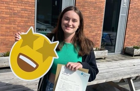 Eve Bird, 18, from Endon, was in the sun celebrating with her dad, following attaining a double Distinction, Merit in Health & Social Care with Applied Psychology. Eve’s next steps are going to Staffs University to study Forensic and Criminological Psychology.