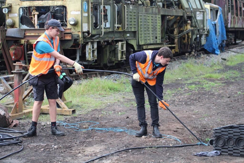 Sunday saw the group treated to a Staffordshire Breakfast on-board the railway’s first-class dining train, before visiting Leek Brook junction where they got a quick tour of the ongoing work to extend to Leek, prior to completing a line walk that included an inspection of the 531-yard Cheddleton Tunnel. The weekend then concluded by helping to expand the power distribution around the Froghall site ahead of developments to occur during the winter.