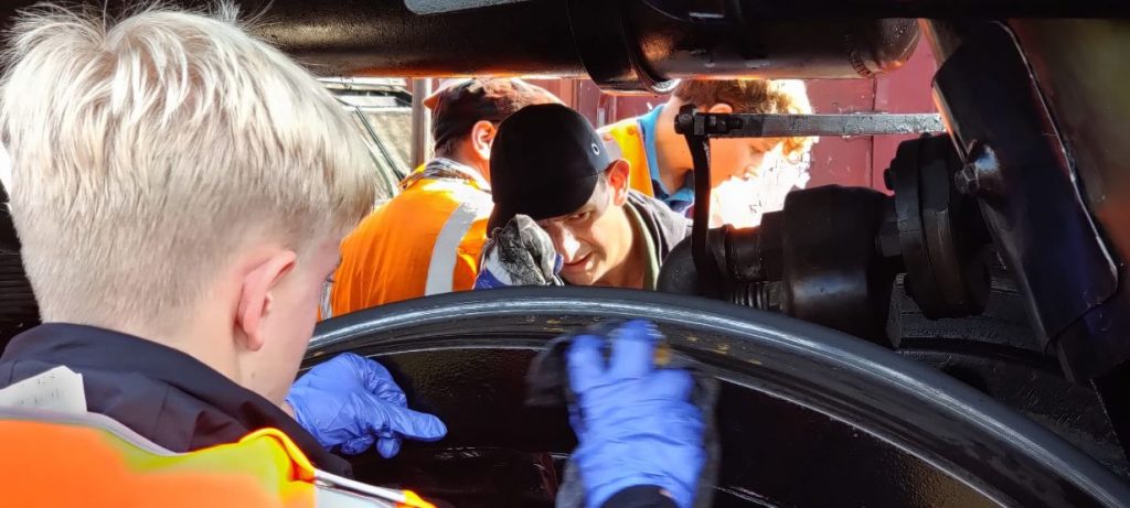 During their two-day visit 12 youngsters got to complete various tasks around the railway, across a number of departments to see what efforts are required behind the scenes to make the trains run. They started off by cleaning the day’s service locomotive, experiencing the engineering that is involved to bring these old workhorses to life. This was followed by an afternoon of ‘fault finding’ at Consall signal box, repairing Victorian technology and helping the signalman operate the box and associated token system – learning how train systems operated safely long before computers came into existence.