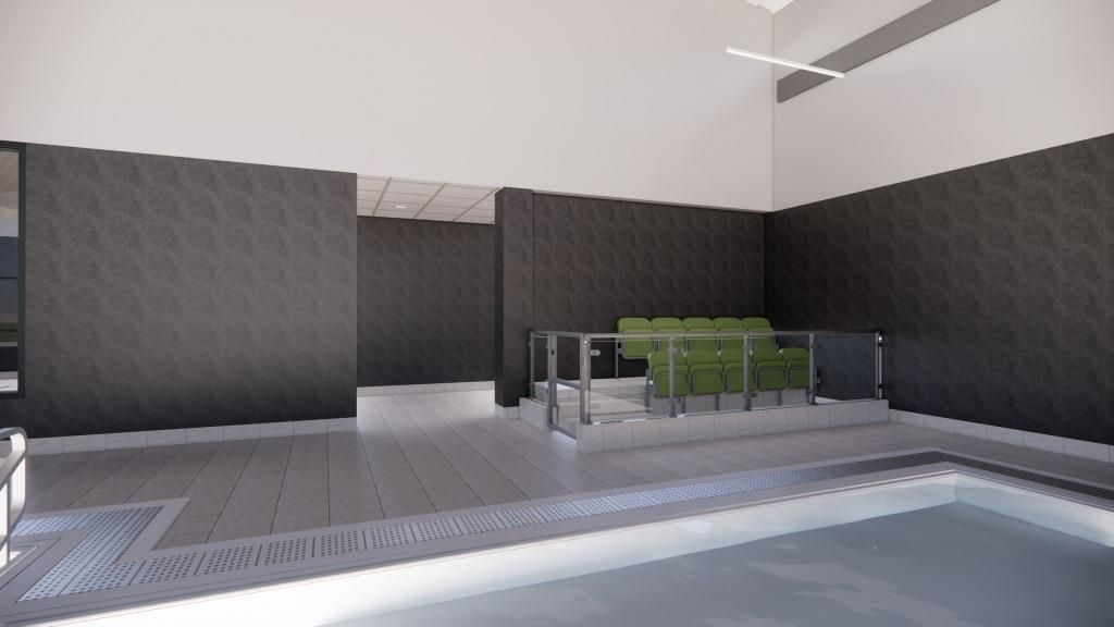 Designs for the main pool have also been changed to introduce seating for up to 39 people during swimming club sessions and events. This seating will only be available for use during events and galas and will supplement the viewing for up to 60 people in the café/viewing area which overlooks both pools.