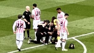 45+7 Daryl Dike stretchered off too!!