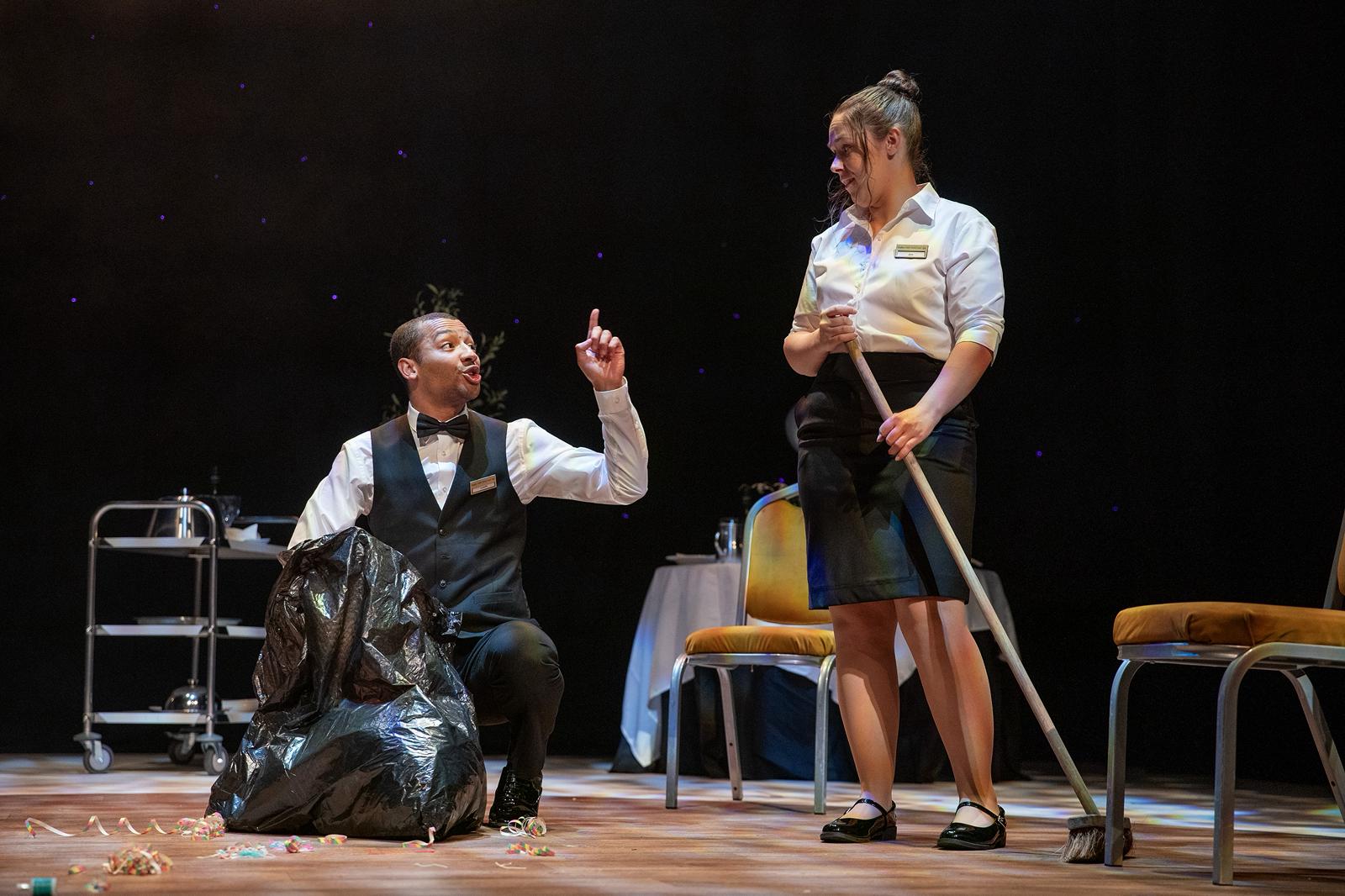 None of the hotel staff seem to be trained for their jobs with Ronnie (William Ilkley) being the only permanent member of staff of the four cast members. The other temps – Joy (Jade Farnill), Duncan (Dylan Allcock) and Lewis (Levi Payne) – have been drafted in to serve at the Black Tie Ball which not only has the leading lights of the business world in attendance but will also see the owner of the hotel make an appearance.
